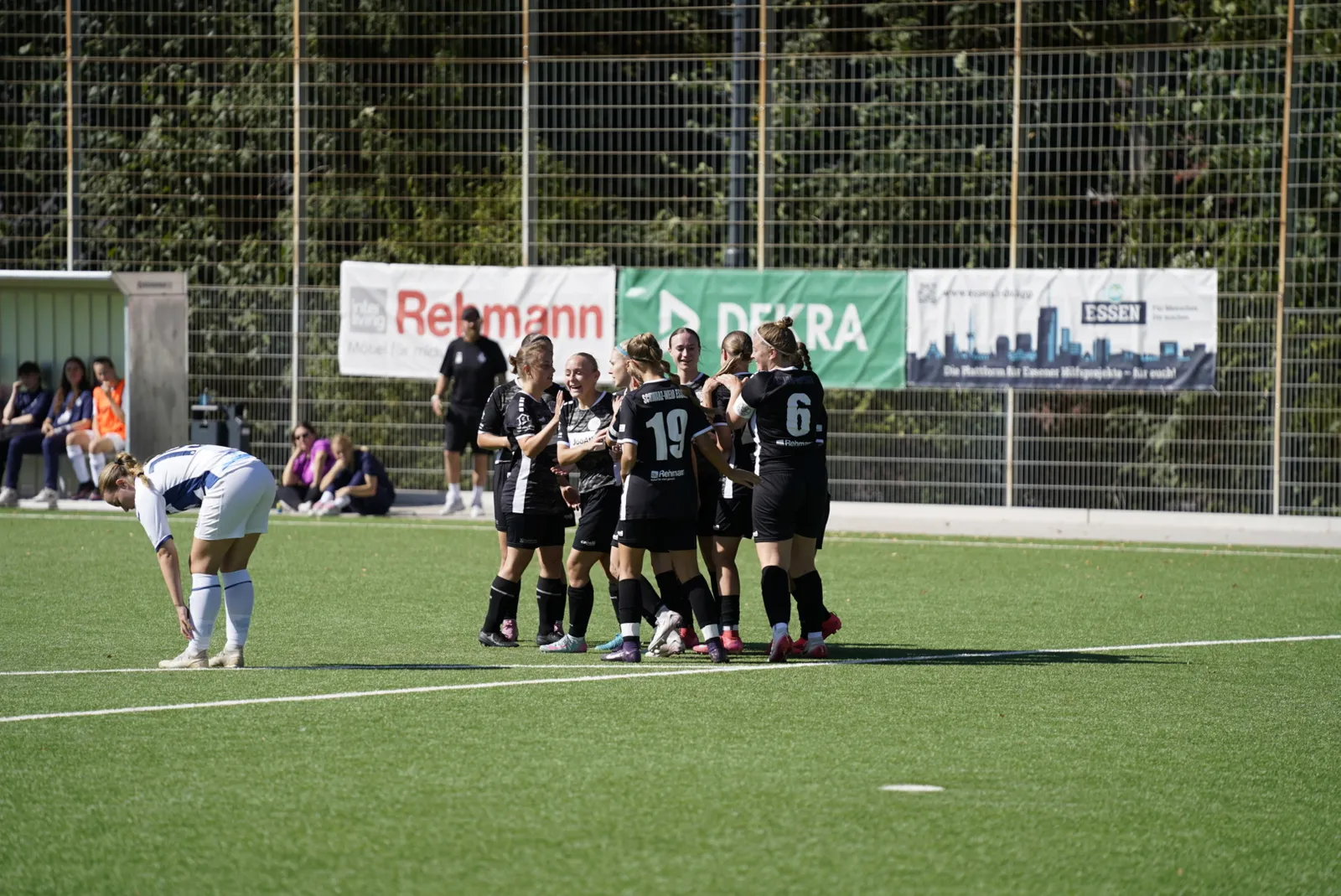 Melissa Martin versenkt in der 83. Minute ihre Freistoß eiskalt zum 6:0. Doch die schwarz weißen Frauen hatte nicht genug, wir wollten die kleinen Nickeligkeiten von Duisburger Seite auf dem Spielfeld beantworten und so traf Eileen Hillmann noch einmal in der 84. Minute zum 7:0. die gerade eingewechselte Vanessa Gorks trifft in der 89. Minute zum 8:0. Den Endstand besorgte Annika Hansen in der Nachspielzeit mit einem ihrer gefürchteten Freistöße zum 9:0.