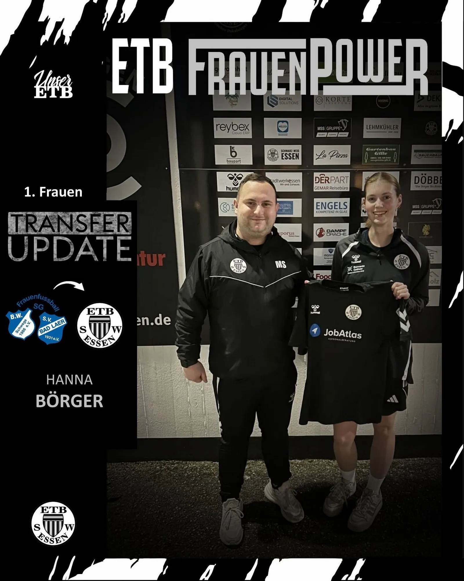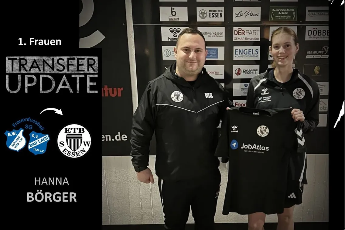 Hanna, die in Zukunft mit der Nummer 5 auflaufen wird, wurde von der Mannschaft gut aufgenommen und hat sich beim ETB direkt wohl gefühlt. Selbstverständlich sind wir auch Ihrem Wunsch entgegengekommen ein Zweitspielrecht zu beantragen. Auch wenn sie hauptsächlich ihre Wochenenden in Essen verbringen wird, soll sie doch bei ihrem Heimatverein SG Schwege / Bad Laar (ebenfalls Bezirksliga) spielberechtigt sein.