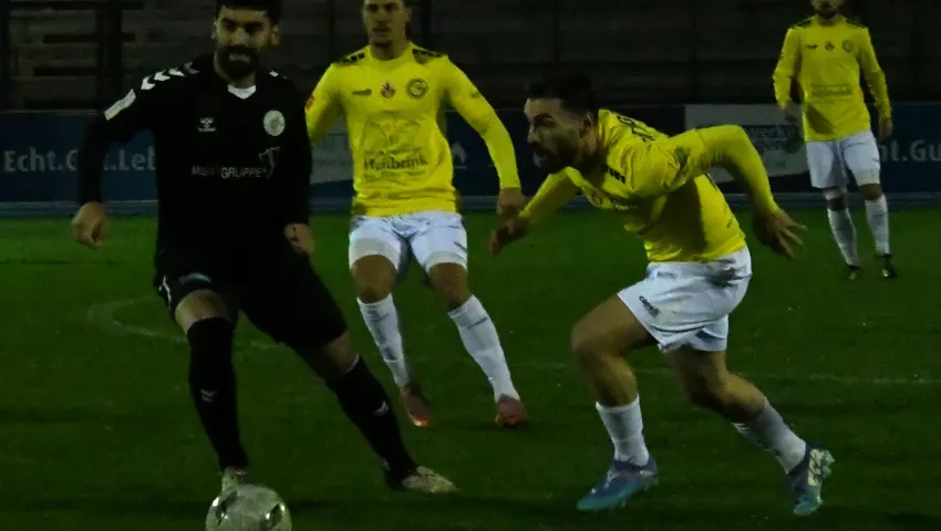 Ratingen legte los wie die Feuerwehr und wäre in der 5. Spielminute fast mit 1:0 in Führung gegangen: ETB-Keeper Phil Lenuweit konnte aber einen Schuss von Guiliano Zimmerling aus acht Metern in die rechte Ecke mit einem tollen Reflex noch über die Latte lenken. Vier Minuten später wäre er aber machtlos gewesen, als Emre Demircan den Ball aus 22 Metern gegen die Unterkante der Querlatte zimmerte (9.). In der 27. Minute pfiff Schiedsrichter David Rus dann einen Foulelfmeter für die Gastgeber. Auch nach dem Spiel konnte niemand erklären, wofür er ihn gegeben hatte. Emre Demircan ließ sich diese Chance nicht entgehen und setzte das runde Leder sicher in die linke Ecke zur 1:0-Führung der Hausherren. Drei Zeigerumdrehungen später hatte dann auch der ETB seine erste Torchance des Spiels: Ein Kopfball von Nico Lucas aus sechs Metern in die linke Ecke wurde aber eine sichere Beute von Schlussmann Marvin Gomoluch. In der Nachspielzeit hatten die „Schwatten“ dann Riesenglück, dass ein satter Schuss von Guiliano Zimmerling nur gegen die Latte klatschte (45. +1).