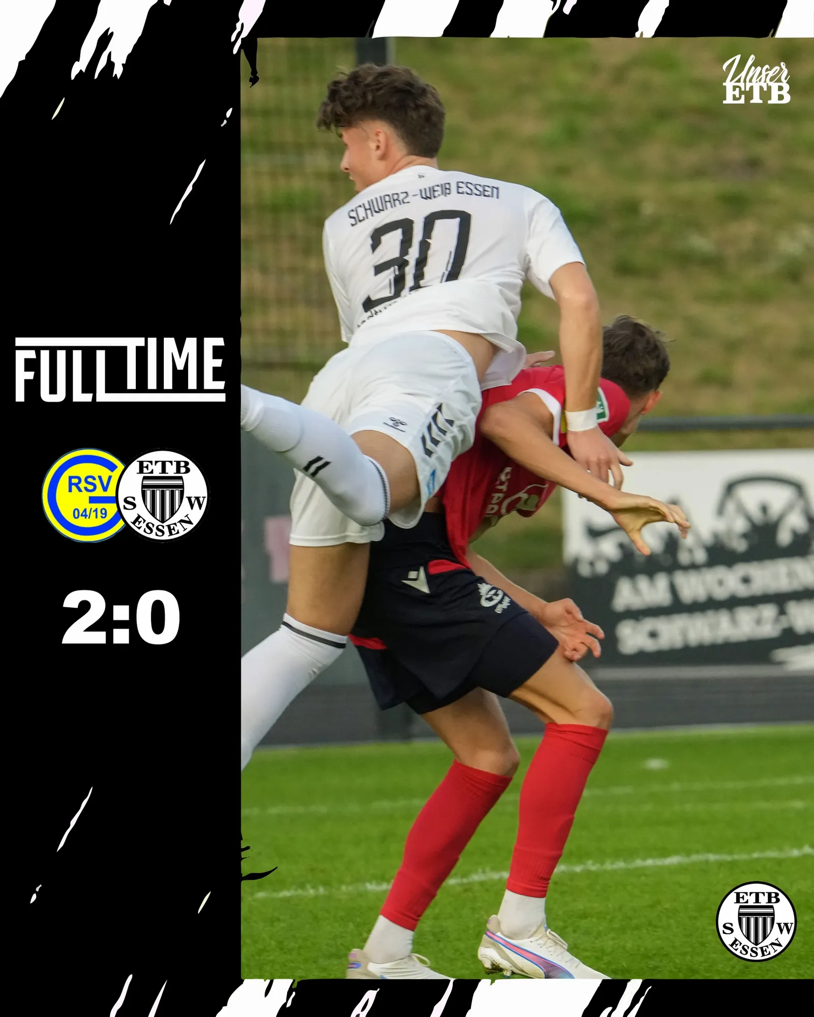 Nach dem Seitenwechsel waren keine acht Minuten gespielt, als der Tabellenführer auf 2:0 erhöhte. Ratingens Angreifer Sven Keyer hatte sich im ETB-Strafraum toll gegen mehrere Spieler durchgesetzt und ließ dann Phil Lenuweit aus neun Metern keine Abwehrchance (53.). Sechs Minuten vor dem Spielende versuchte es Essens Armen Shavershyan mal mit einem Flachschuss aus 16 Metern in die linke Ecke, der aber gut von Marvin Gomoluch pariert wurde. In de 91. Spielminute wäre den Schwarz-Weißen fast noch der Anschlusstreffer gelungen, aber ein abgefälschter Schuss von Maurice Haar wurde von einem Ratinger Verteidiger noch auf der Torlinie gerettet.