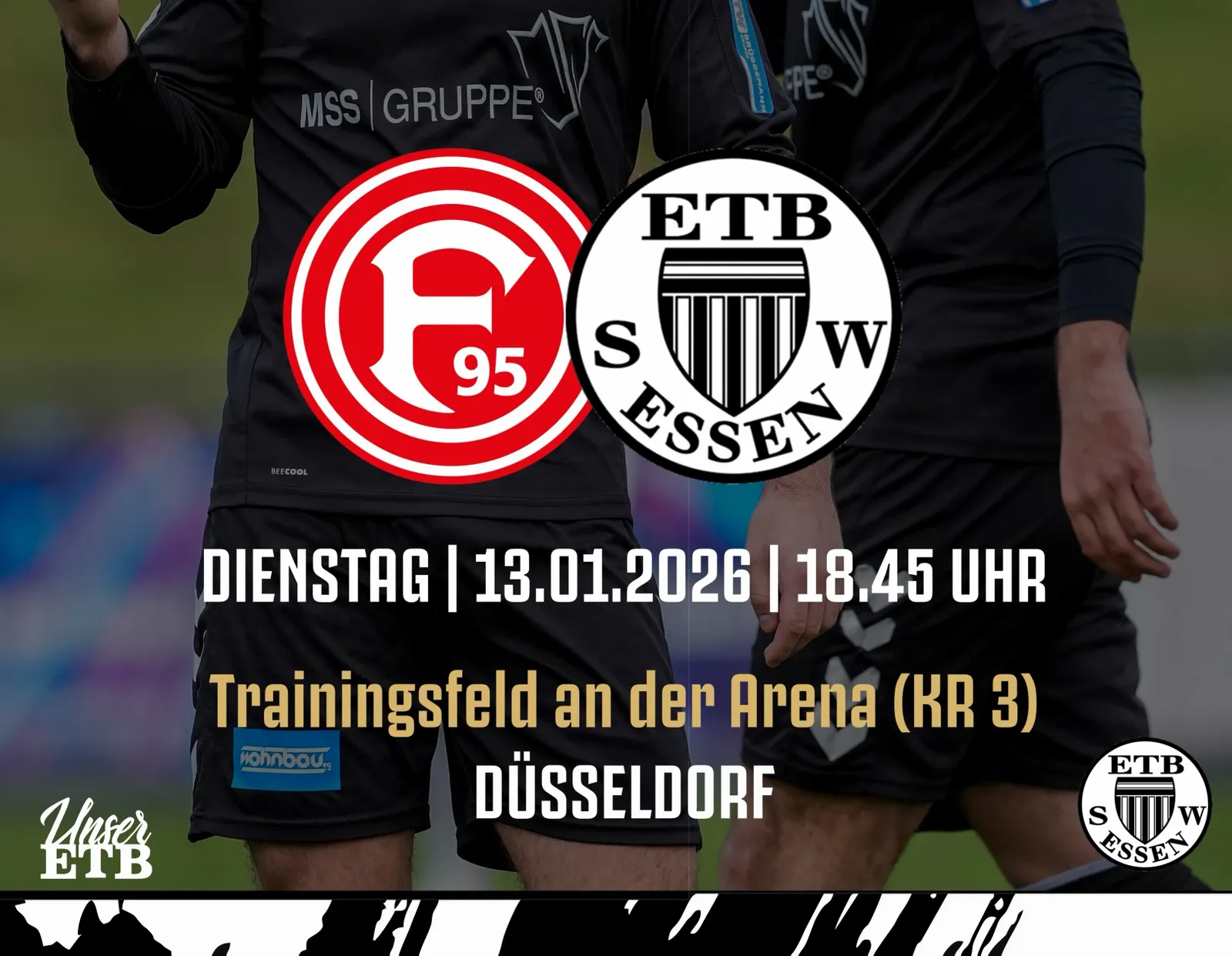 Am morgigen Dienstag bestreitet unsere Oberliga-Mannschaft ihr erstes Testspiel im Jahr 2026. Für die Mannschaft vom Trainerduo Christian Dorda & Björn Matzel steht dann direkt eine schwere Aufgabe auf dem Programm, denn sie tritt beim klassenhöheren Regionalligisten Fortuna Düsseldorf U23 an. Die Begegnung wird um 18.45 Uhr auf dem Trainingsfeld an der Arena (Am Staad 11, 40474 Düsseldorf) angepfiffen.