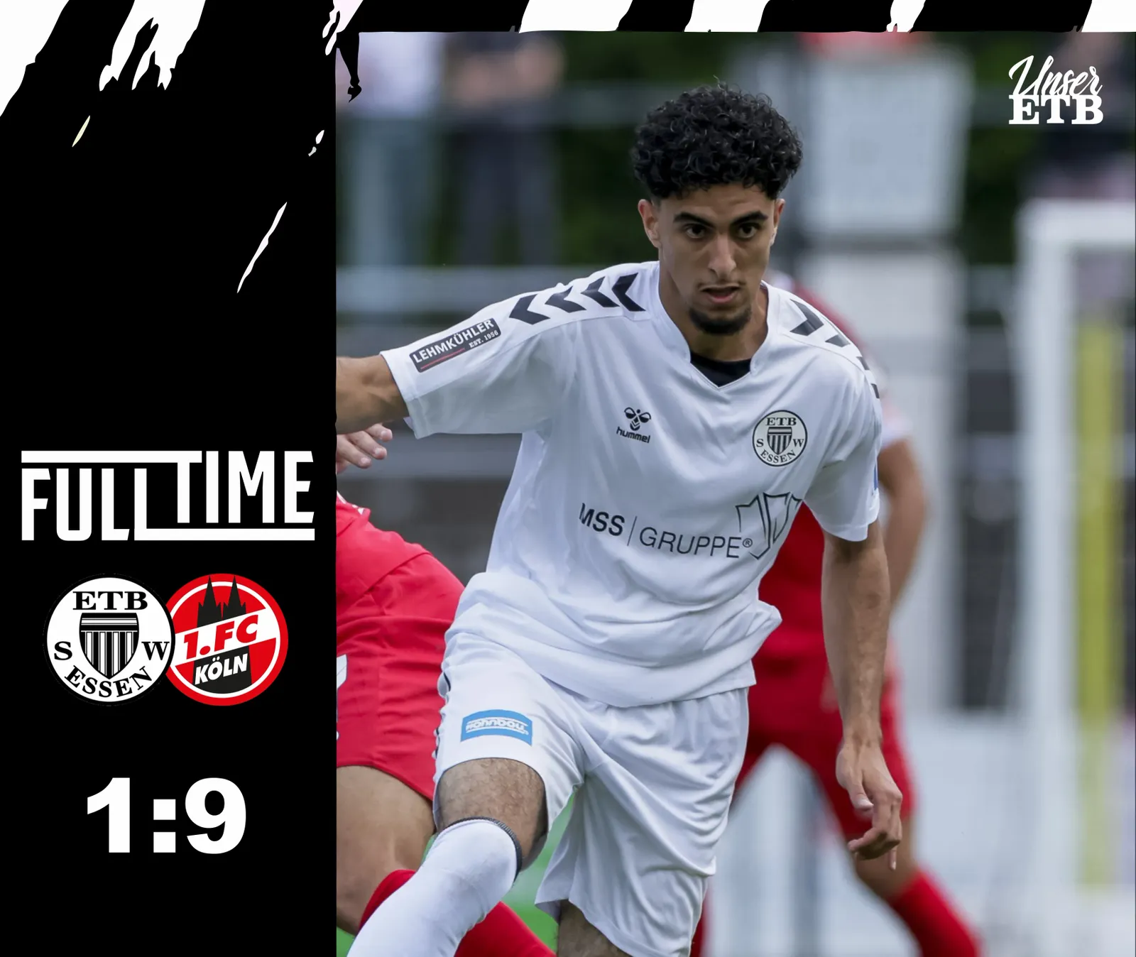 Nach dem Seitenwechsel schlug dann erst einmal die Stunde der ETB-Youngster: Keine zehn Minuten waren gespielt, als den Hausherren der Ehrentreffer zum zwischenzeitlichen 1:5 gelang. Eine schöne Flanke von Simon Gawryluk lenkte Rotosson Kanu per Direktabnahme aus sechs Metern unhaltbar in die linke Ecke des Gästetores (54.). Beide spielten in der letzten Saison noch in der A-Jugend, genauso wie der 18-jährige ETB-Torhüter Mohamed Abou Khamis, der in der 68. Spielminute einen Foulelfmeter von Waldschmidt klasse parieren konnte. Danach besann sich der 1. FC Köln aber wieder aufs Tore schießen und gewann durch Treffer von Jan Thielmann, Ragnar Ache und zwei weiteren Buden von Gian-Luca Waldschmidt noch sehr deutlich mit 9:1.