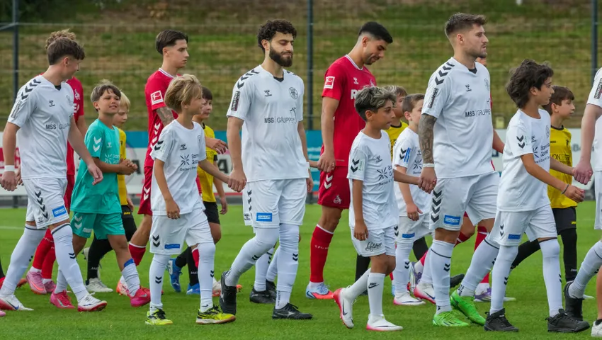 In der 10. Spielminute sorgten die Schwarz-Weißen beinahe für eine Überraschung und hätten mit 1:0 in Führung gehen müssen: Nach einem Bilderbuchkonter lief ETB-Angreifer Lukas Korytowski allein aufs Kölner Tor zu, ließ dann gekonnt FC-Keeper Ron-Robert Zieler aussteigen, aber als er den Ball dann ins Tor bugsieren wollte, rutschte er weg und die Großchance für die Gastgeber verpuffte. Nach 22 Minuten gingen dann die Kölner mit 1:0 in Führung und nutzten ihre Torchancen bis zur Halbzeitpause konsequent aus. Der überragende siebenfache Nationalspieler Gian-Luca Waldschmidt tat sich dabei besonders hervor und erzielte im ersten Durchgang drei seiner heutigen fünf Treffer. Für die beiden anderen Tore zeichneten sich Denis Huseinbasic und FC-Stürmer Ragnar Ache verantwortlich.