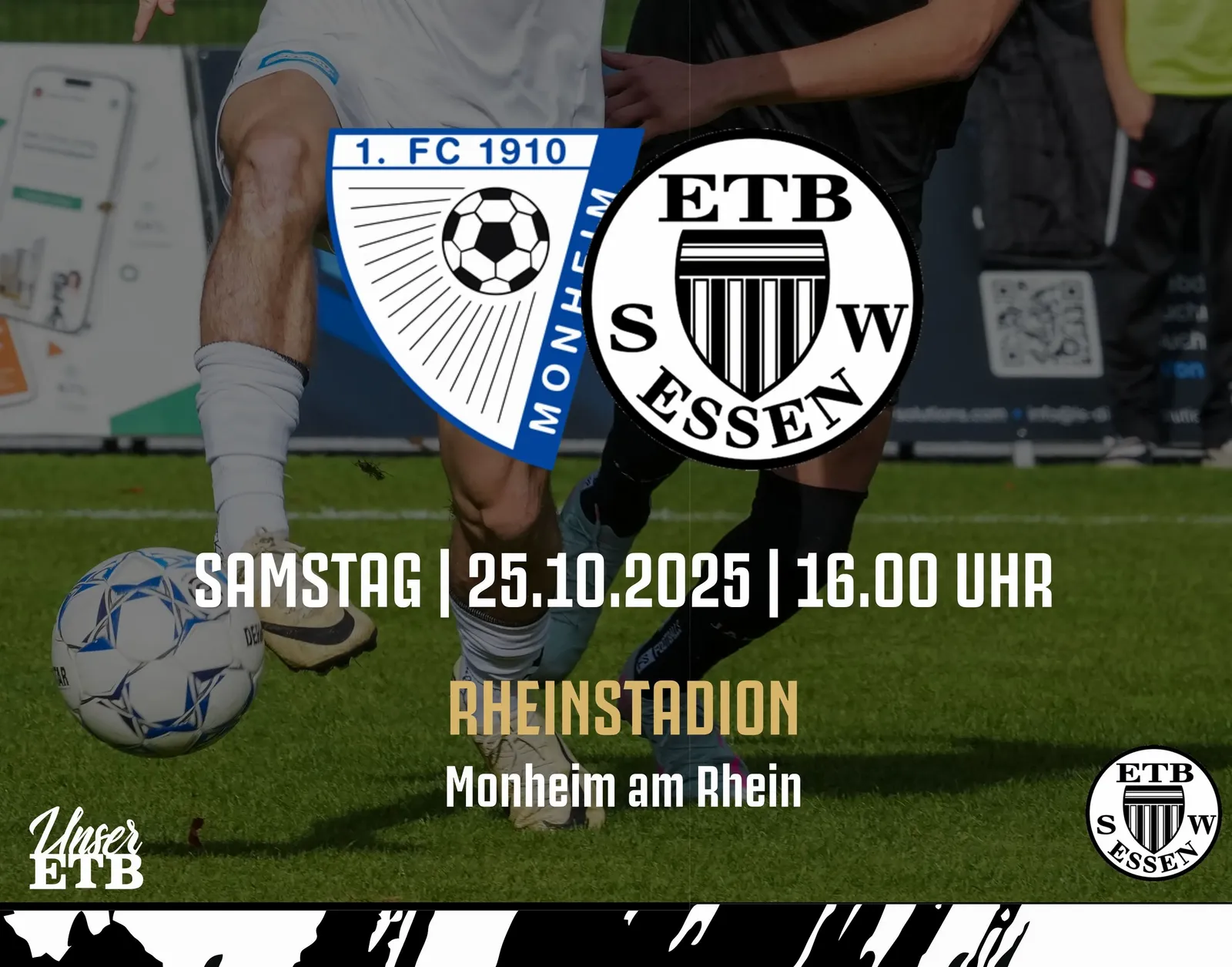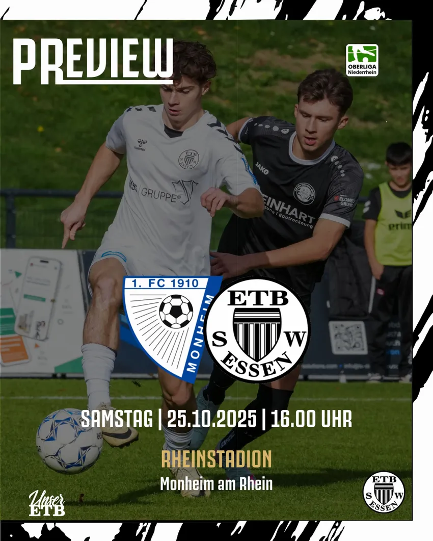 Nachdem der ETB Schwarz-Weiß Essen am letzten Sonntag durch einen 2:0-Derbysieg gegen Adler Union Frintrop in die Erfolgsspur der Oberliga Niederrhein zurückgekehrt ist, will die Mannschaft von Interimscoach Björn Matzel auch das zweite Spiel unter seiner Regie erfolgreich gestalten. Unter der Woche wurde hart dafür gearbeitet, um auch beim 1. FC Monheim einen Dreier einzufahren. Die Partie im Rheinstadion (Kapellenstraße 1, 40789 Monheim) findet am Samstag um 16 Uhr statt.