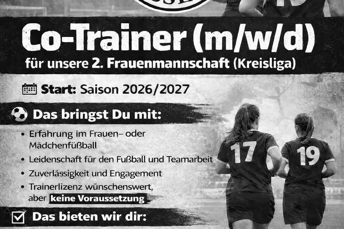 Wir suchen für die Saison 2026/2027 einen Co Trainer (m/w/d) für unsere zweite Frauenmannschaft, die zu der laufenden Saison neu gegründet wurde und sich zur Zeit in der Kreisliga etabliert.