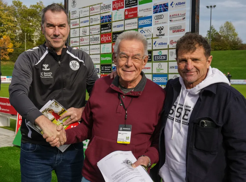 Wir freuen uns sehr, dass wir vor dem gestrigen Derbysieg gegen Adler Union Frintrop drei langjährige und verdiente Mitglieder ehren und auszeichnen durften. Klaus Schmidt ist bereits seit 72 Jahren ETB-Mitglied und bei jedem Heim- und Auswärtsspiel unserer Oberligamannschaft dabei. Auf 52 Jahre kann Hans Simons – der Klaus Schmidt bei jedem Spiel begleitet – und auf 25 Jahre unser unverzichtbarer und toller ETB-Fotograf Frank Siebers zurückblicken.