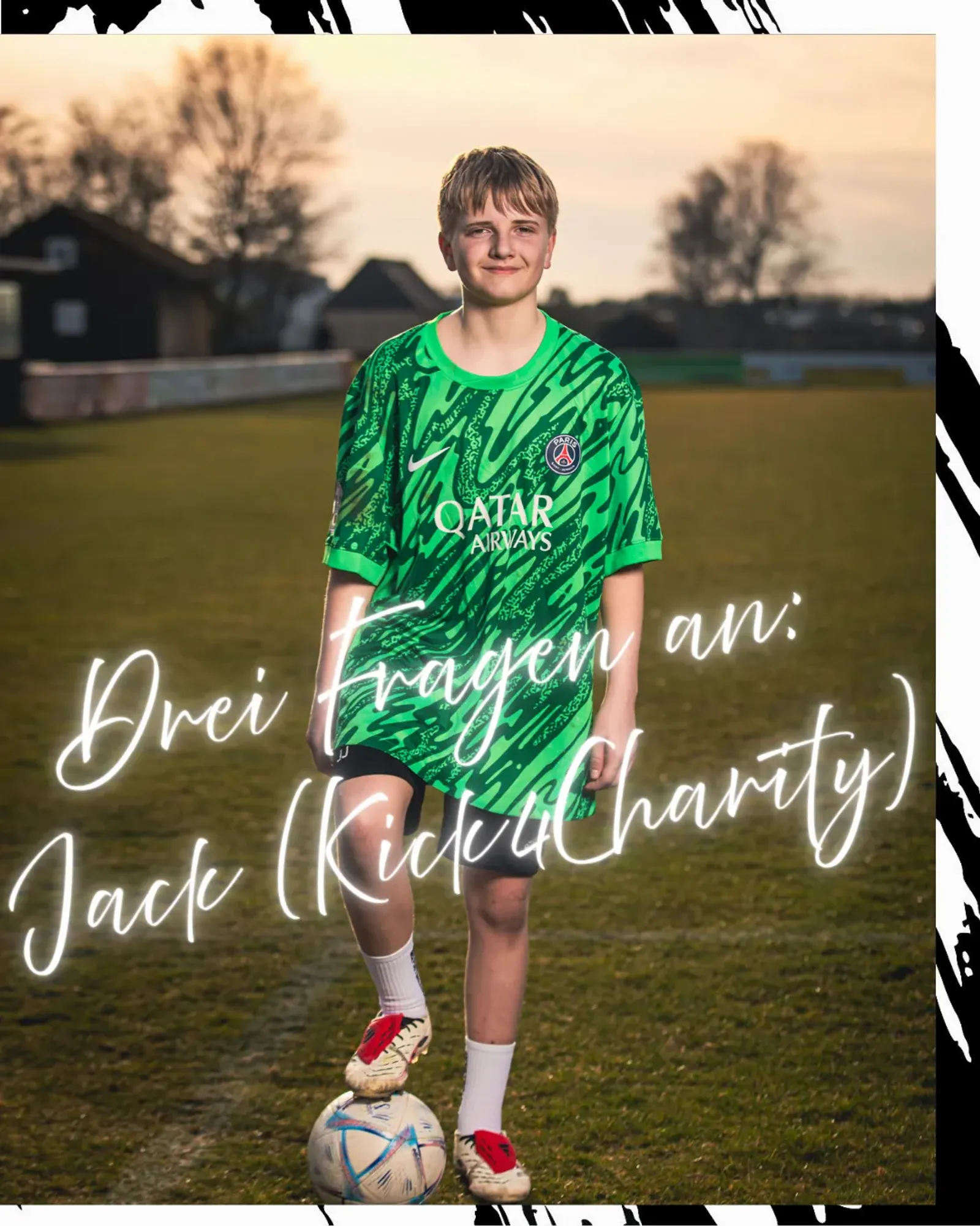 JB: Hallo Jack! Vielen Dank, dass du dir neben deiner Schulzeit und der Arbeit für dein Projekt "Kick4Charity" die Zeit nimmst, uns ein paar Fragen zu beantworten. Bleiben wir direkt bei "Kick4Charity": Mit gerade einmal 13 Jahren auf dem Buckel hast du dich daran gemacht, mit deinem Projekt für gemeinnützige Zwecke Gelder einzunehmen. Wie kam es dazu und wie funktioniert das mit den Versteigerungen?