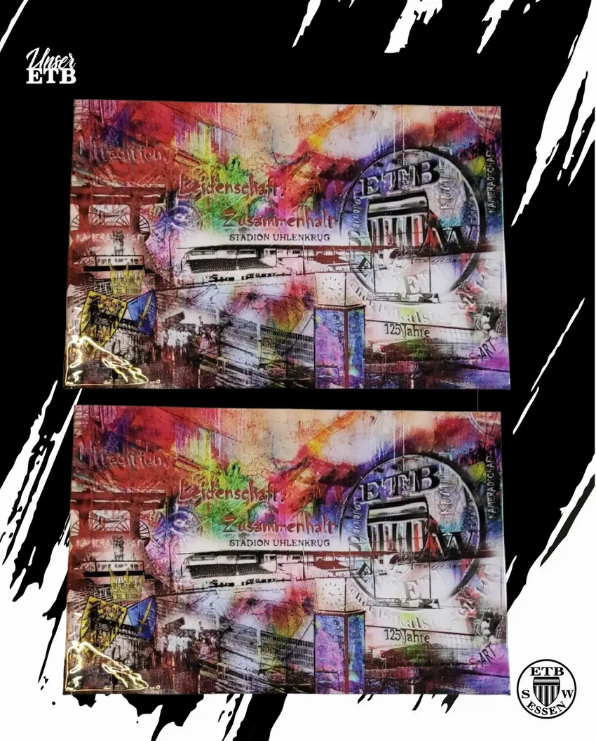 Zum 125-jährigen Jubiläum unserer Fußballabteilung in diesem Jahr hat der international bekannte Künstler Sharyar Azhdari ein wunderschönes ETB-Kunstwerk erstellt. Das Original wurde als Hauptgewinn bei der Gala zum 125. Geburtstag im Oktober verlost. Der sympathische ETB-Unterstützer ist durch seine Pop-Art Bilder und Skulpturen bekannt und betreibt die Kunst- & Kulturgalerie S-ART (Lindenallee 10, 45127 Essen).