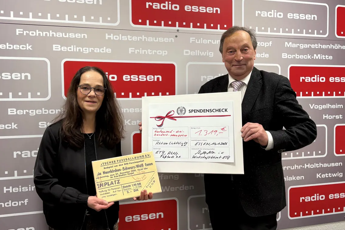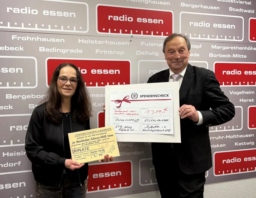 Der ETB Schwarz-Weiß Essen unterstützt - in Kooperation mit Radio Essen - Die Aktion Lichtblicke e.V.! Die Aktion Lichtblicke e.V. kümmert sich um die, die keine Lobby haben und immer übersehen werden: Kinder aus Familien, die leider in Not geraten sind. Mit großem Dank an alle Beteiligten überreichte am Mittwoch Reinhard Hochkirchen, im Namen des Wirtschaftsbeirates der Fußballabteilung des ETB Schwarz-Weiß Essen, den symbolischen Spendenscheck an Anna Bartl von Radio Essen.